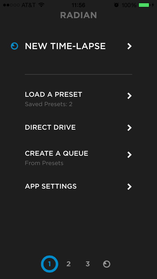 The R2 Radian software allows for a few cool new features, described more fully here. Because of this you just need to go to the first page of the Radian control app and see if Direct Drive is an option (the third one down) on that page, as shown below. If it is an option, then you have the R2 software version selected in the app.